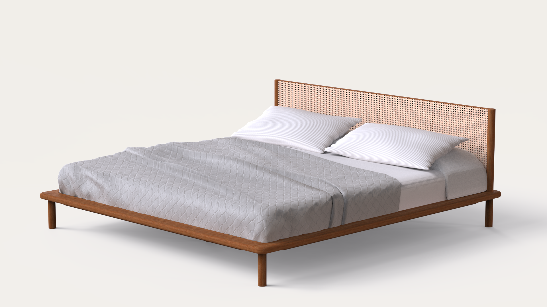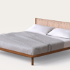 De beleza sutil , simples e discreta como o significado do seu nome, a Cama Shibui é inspirada em traços japoneses, por isso um pouco mais baixa que as camas comuns. Sua forma é simples mas exala personalidade. Em madeira maciça de Tauari e com cabeceira em palha de algodão natural, que pode ser substituída por laminas naturais diversas, couros ou Bambu prensado.