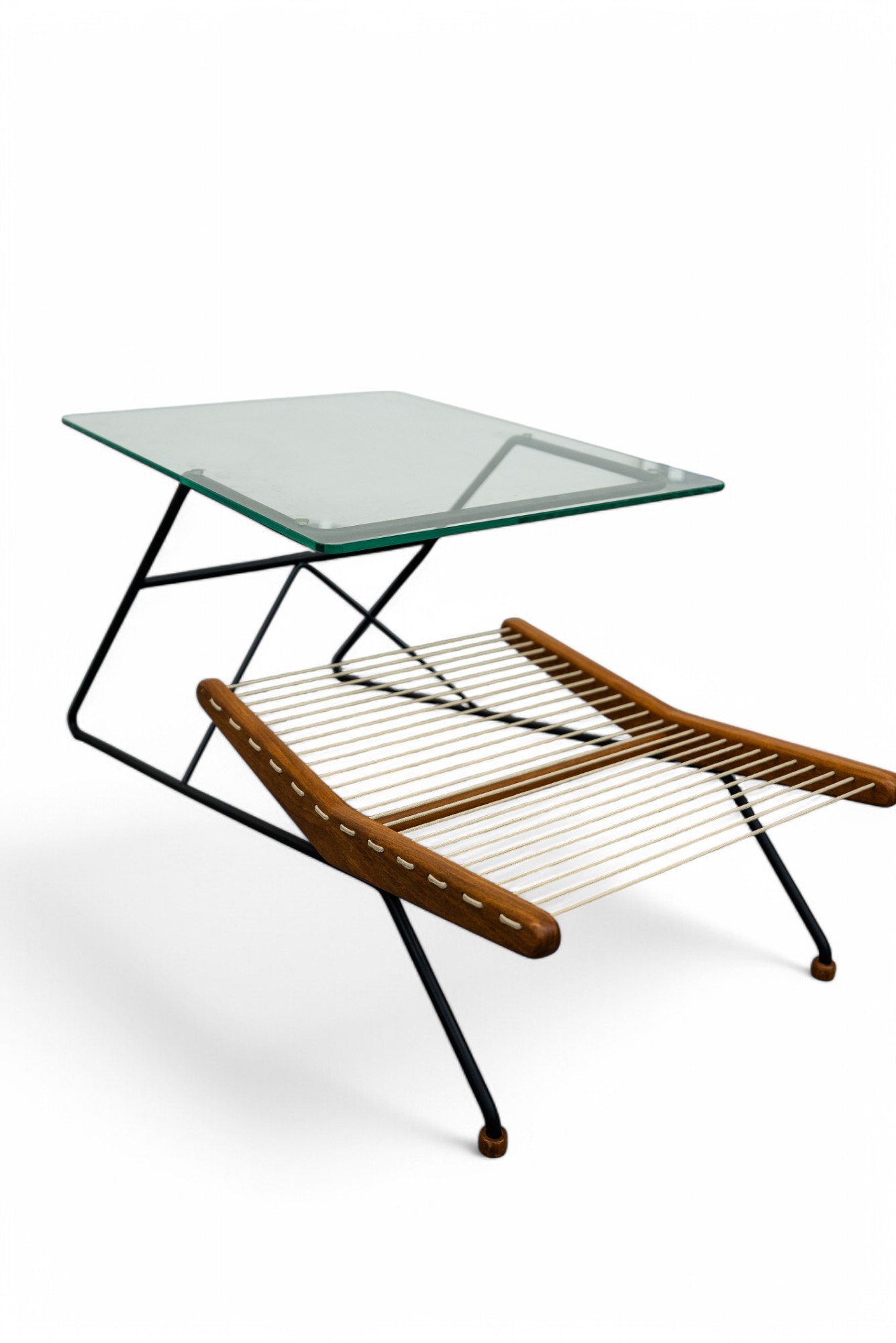 Inusitadas! A Poltrona L e a Mesa 05 compõem uma linha de peças autoral, onde a madeira e a corda se entrelaçam para valorizar a matéria-prima brasileira. A mesa lateral combina tampo de vidro, pés de ferro e um revisteiro integrado, enquanto a poltrona se destaca pela ergonomia inovadora: sua estrutura em corda molda-se ao corpo, proporcionando aconchego, finalizado por braços em madeira. Um conjunto que equilibra ousadia estética e funcionalidade.