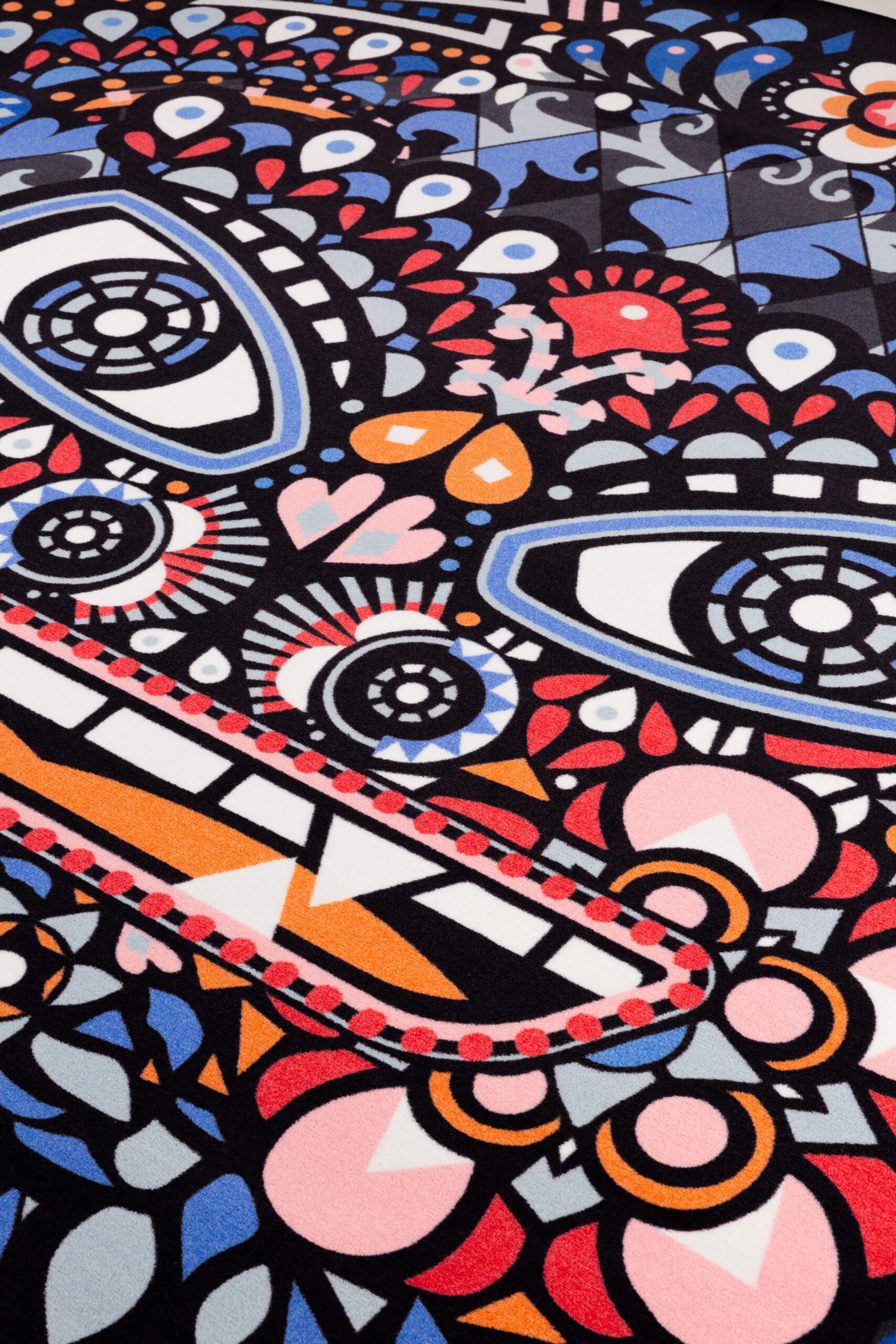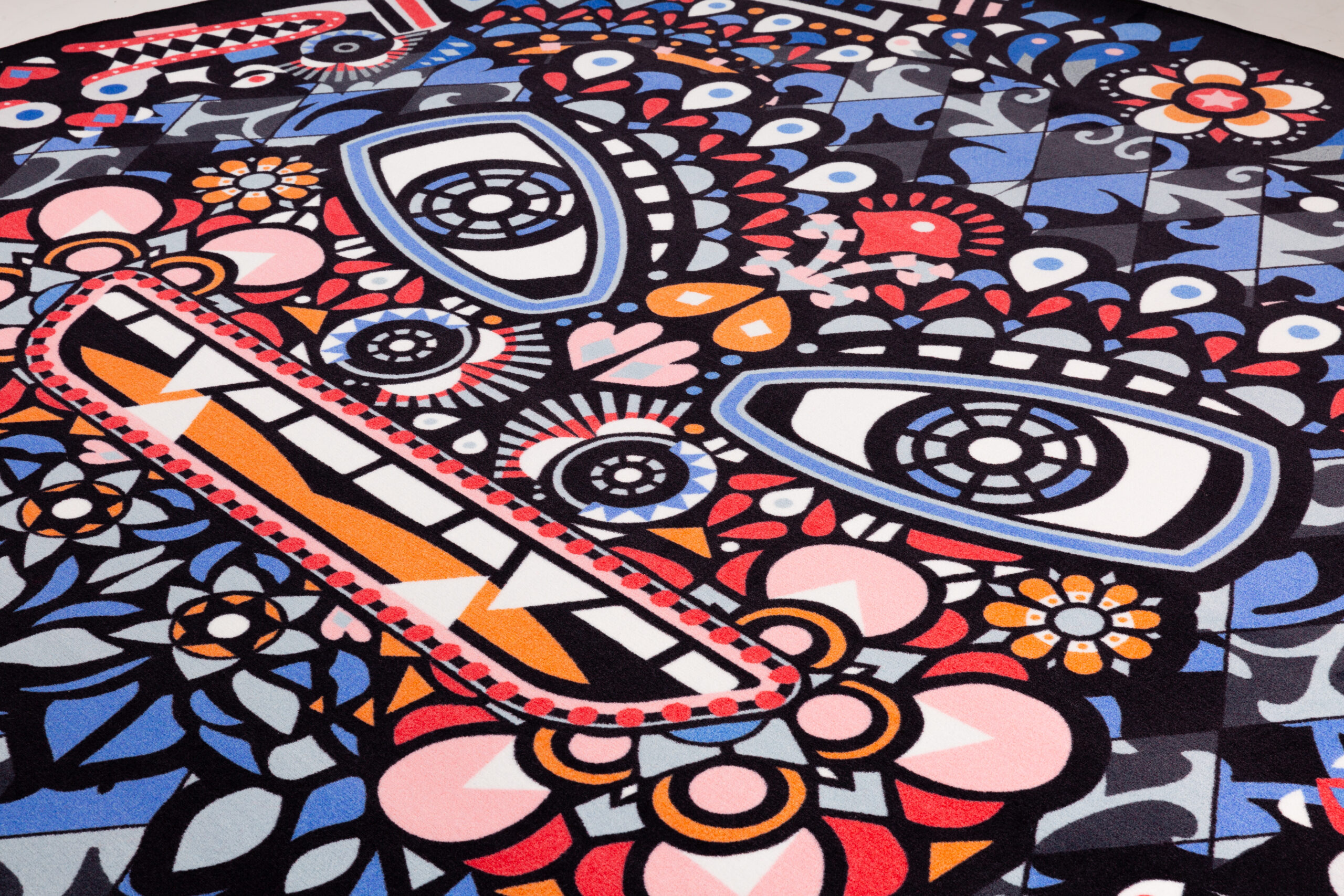 O Tapete Monster faz parte da coleção Monster do estúdio Marcel Wanders. Um dia, Marcel acordou e lembrou-se vividamente de uma visão onírica. Com os últimos restos de sono saindo de sua mente nublada, ele escreveu sua visão para a vida após a morte. Uma história sobre mortalidade, borboletas, musas e uma festa eterna. A história inspirou a coleção Monster, incluindo este tapete redondo. Chama a atenção em qualquer cômodo com suas cores vivas e uma intrigante história de fundo.